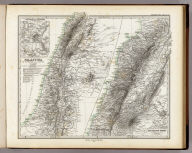 Note: In outline color. Page is split in two with Palestine on the left and Lebanon on the right. An inset map shows the environs of Jerusalem.